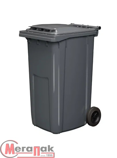 Контейнер для мусора 240 л с крышкой на колесах серый