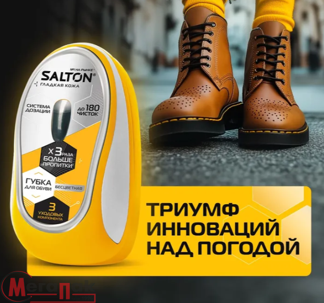 Качественная поролоновая губка является незаменимым средством для экспресс-ухода за кожаной обувью. А если Вы цените не только качество, но и экономичность, то Вам непременно понравится губка с дозатором для обуви из гладкой кожи Salton.