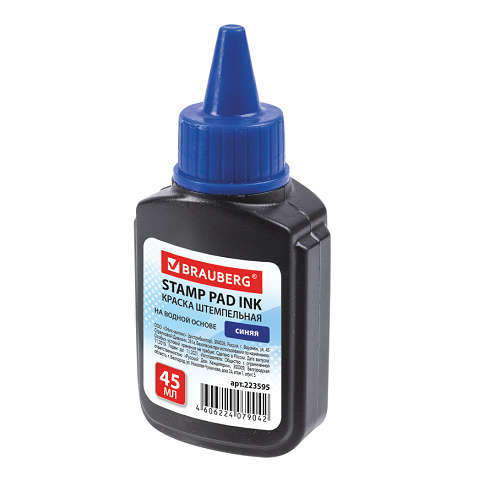 Штемпельная краска BRAUBERG предназначена для заправки штемпельных подушек, используемых для всех видов ручных и автоматических оснасток печатей, штампов, нумераторов и датеров.