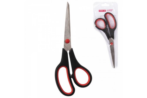 Ножницы 195 мм, STAFF EVERYDAY, бюджет, резиновые вставки, черно-красные, ПВХ чехол, 237499