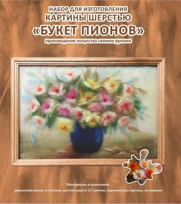 Набор для создания картины из шерсти. Данный вид творчества еще называют шерстяная акварель. В набор входит: подарочная коробка, книжка-инструкция, цветная шерсть, подложка, деревянная рамка со стеклом, трафарет по необходимости.