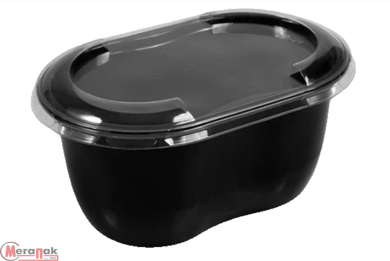 Контейнер черный для холодных пищевых продуктов. Красивый, удобный и технологичный контейнер для различных видов продуктов. Европейский дизайн, штабелирующие элементы позволяют легко ставить закрытые контейнеры друг на друга. Материал PET обеспечивает высокие барьерные свойства, а значит высокий уровень гигиены и годность упакованных продуктов. Отлично подойдет для салатов, творога, сметаны, желе, меда, приправ, орехов, конфет, грибов, бакалеи, ягод, фруктов и десертов.