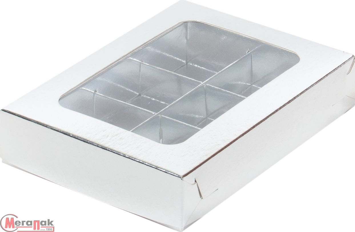 Коробка для конфет 6шт с вклеенным окном 155*115*30 мм (серебро), 1 шт, 051062 (50)