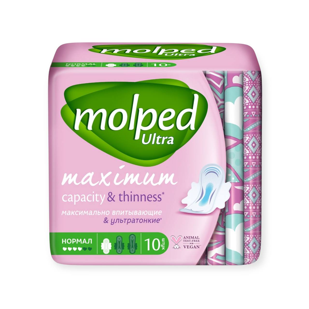 Прокладки Molped "Ultra Normal" подарят ощущение комфорта и защищённости во время критических дней. С тиснением. С суперабсорбентом (гидрофильный акриловый полимер). Поверхность "мягкая сеточка" - верхний слой с микропорами. Прокладки продезинфицированы ультрафиолетовым облучением.