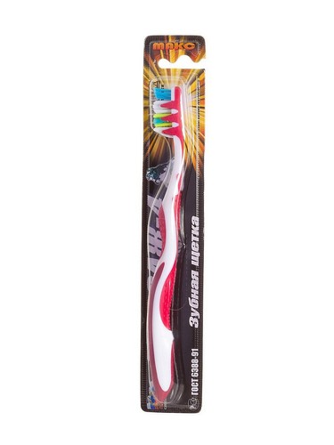 Закругленные концы щетины защищают десна от повреждений. Изготовлена щетка из экологически чистых материалов. Обладает высшей степенью эластичности и износоустойчивости. Щетина средней жесткости. Щетка имеет массажные вставки. Щетка для языка. Трехкомпанентная ручка.