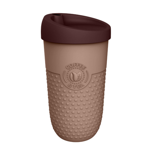 Стакан для напитков с рельефом, крышкой «Coffee & Tea» 550мл (коричневый)