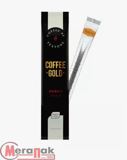 Кофе растворимый Teatone Coffee Gold в стиках. Обладает изысканным вкусом и глубоким ароматом в сочетании с удобством приготовления. Кофе изготовлен из зерен элитных сортов арабики, тщательно собранных и обжаренных до золотистого цвета по традиционной технологии. Состав: кофе натуральный растворимый сублимированный. Количество в упаковке: 10 стиков. Масса нетто: 18 г (100x1,8 г)