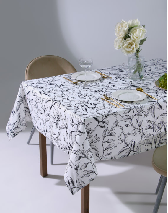 Эта скатерть из натурального хлопка с растительным принтом создаст свежую и элегантную атмосферу за вашим столом. Плотная ткань рогожка хорошо держит форму и подходит для ежедневного использования и особых случаев, например, для праздничного завтрака или ужина в честь 8 Марта. Классическое сочетание чёрного и белого в ботаническом рисунке легко впишется в современный интерьер.
