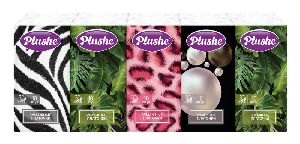 Платочки Бумажные Plushe Deluxe Standart 3слоя, 10листов, 10 в упаковке, 28 упаковок в коробе