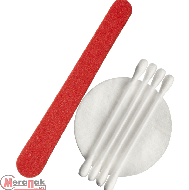 Включает четыре ватных палочки, два ватных диска и миниатюрную пилочку для ногтей. Он предназначен для удобства гостей в отелях, гостиницах и других местах временного проживания, а также подходит для использования в путешествиях и спортивных клубах. Компактный набор не занимает много места и всегда под рукой.