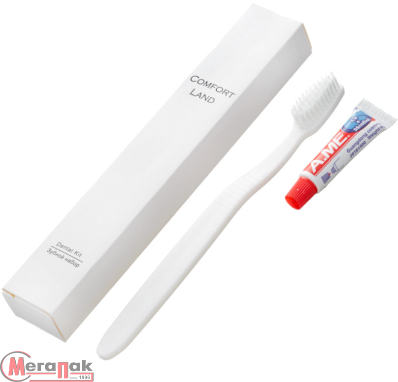 Зубной набор (зуб. щетка 13.5см+зуб. паста туба 3г), картон белый (Коллекция COMFORT LAND) 1/25