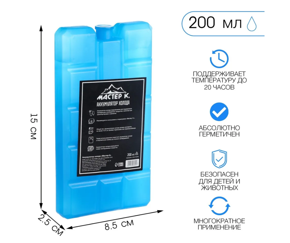 Аккумулятор холода гелевый "Мастер К", 200мл, хладоэлемент для термосумок,15 х 8,5 х 2,5 см, 9396080