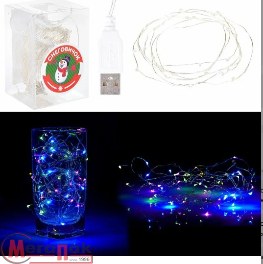 Электрогирлянда Роса 10 м, 100 ламп, USB, цветная, S0557