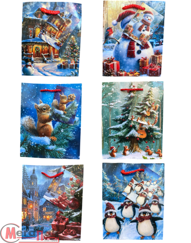 Новогодние подарочные пакеты-сумки из ламинированной бумаги с рисунком. Подарочные бумажные пакеты из данной серии подходят для упаковки подарков на Новый год! Размер 14*20* дно 7 см.