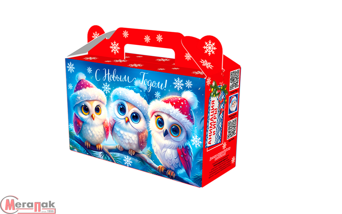Новог.коробка "Подарочек малый "Пернатое счастье" с игрой и анимацией, УФ, до 500 гр