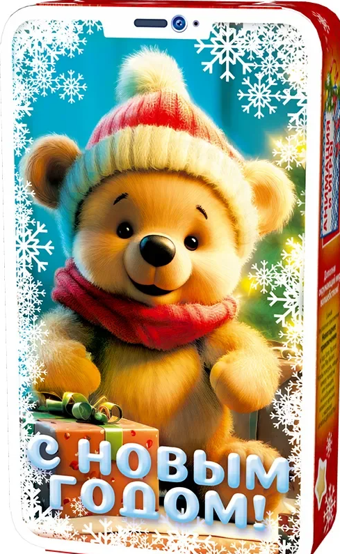 Новог.коробка "Смартфон "Мишка и Енот" с анимацией, УФ, до 400 гр