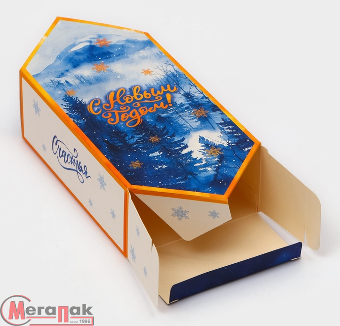 Она идеально подойдёт для упаковки сладостей, небольших подарков, сувениров и аксессуаров. Яркий и стильный дизайн создаст настроение праздника, а прочный материал гарантирует сохранность содержимого. Такая коробка станет не только практичной упаковкой, но и эффектным элементом декора, привлекая внимание и даря радость получателям.