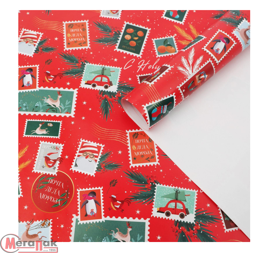 Бумага упаковочная глянцевая "Новогодние марки", 70 х 100 см, 7066049