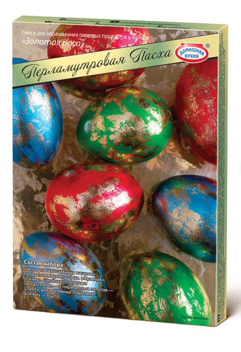 Хит! Набор с перламутровыми красителями для окрашивания и декорирования пасхальных яиц. Набор включает фольгу, с помощью которой окраска яиц приобретает сверкающий металлический блеск.