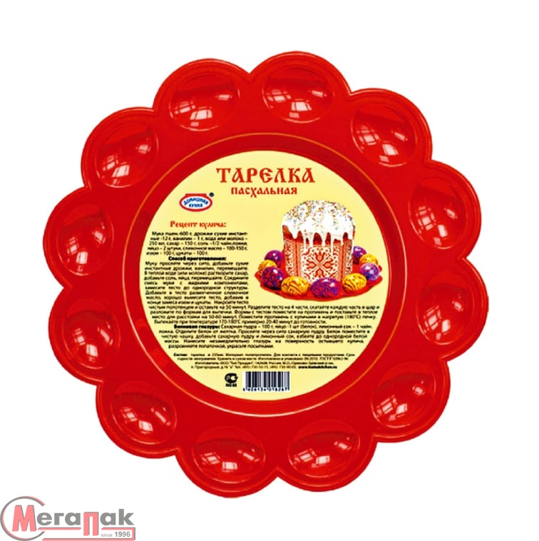 Тарелка пасхальная для кулича и яиц d280мм, красная, пластик, 12734 / 42510