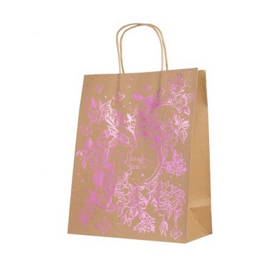 Пакет Птички из крафт-бумаги, для сувенирной продукции, с тиснением, с шириной основания 26 см, плотность бумаги 150 г/м2 .