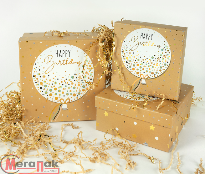 Коробка С Днем Рождения (воздушный шар), Бежевый, 15.5*15.5*7.5 см.1 шт