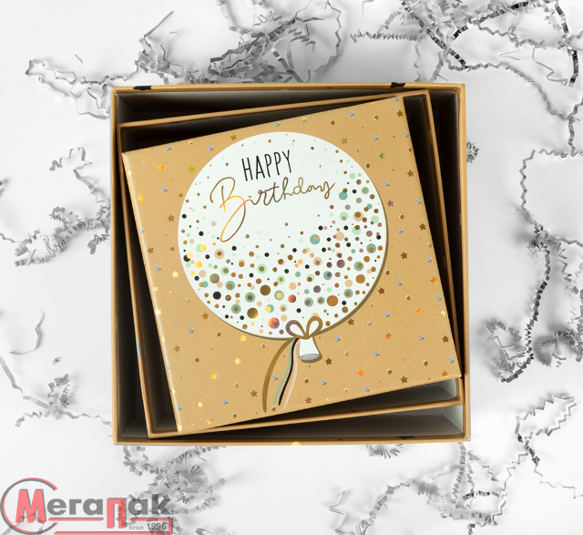 Коробка С Днем Рождения (воздушный шар), Бежевый, 20*20*9,5 см, 1 шт