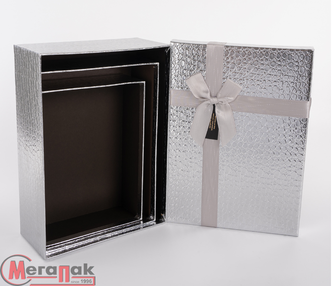 Коробка Шикарный подарок, Серебро, Металлик, 26*19*8 см, 1 шт