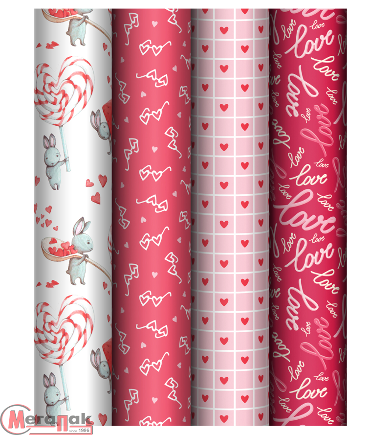 Бумага упаковочная глянцевая «Love», 70*100 см, 80г/м2, MESHU, ассорти, 4 дизайна, 372638