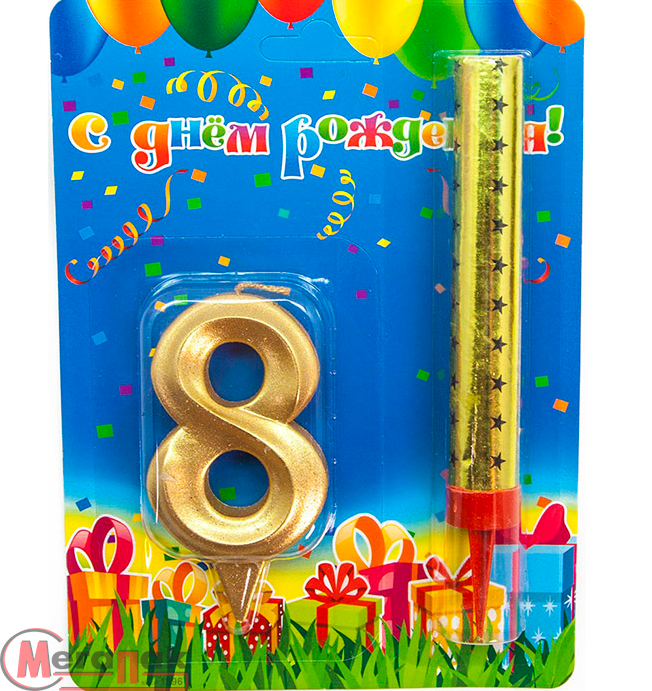 Набор, Фонтан и Свеча Цифра, 8 Грани, Золото, 10 см, 1 шт., 1778