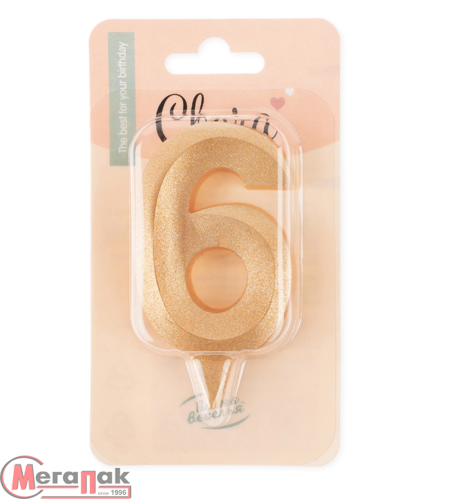 Свеча Цифра, 6 "Грани", Золото, 4*7 см, 1 шт, 1704