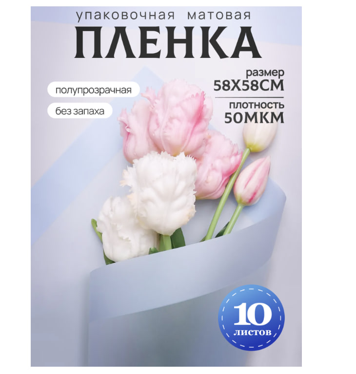 Пленка матовая 58см*58см, 10 листов, кант 50, небесный