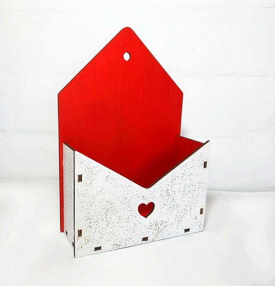 Ящик конверт двухцветный с блестками №9 (17*6,5*25,5) бело/красный