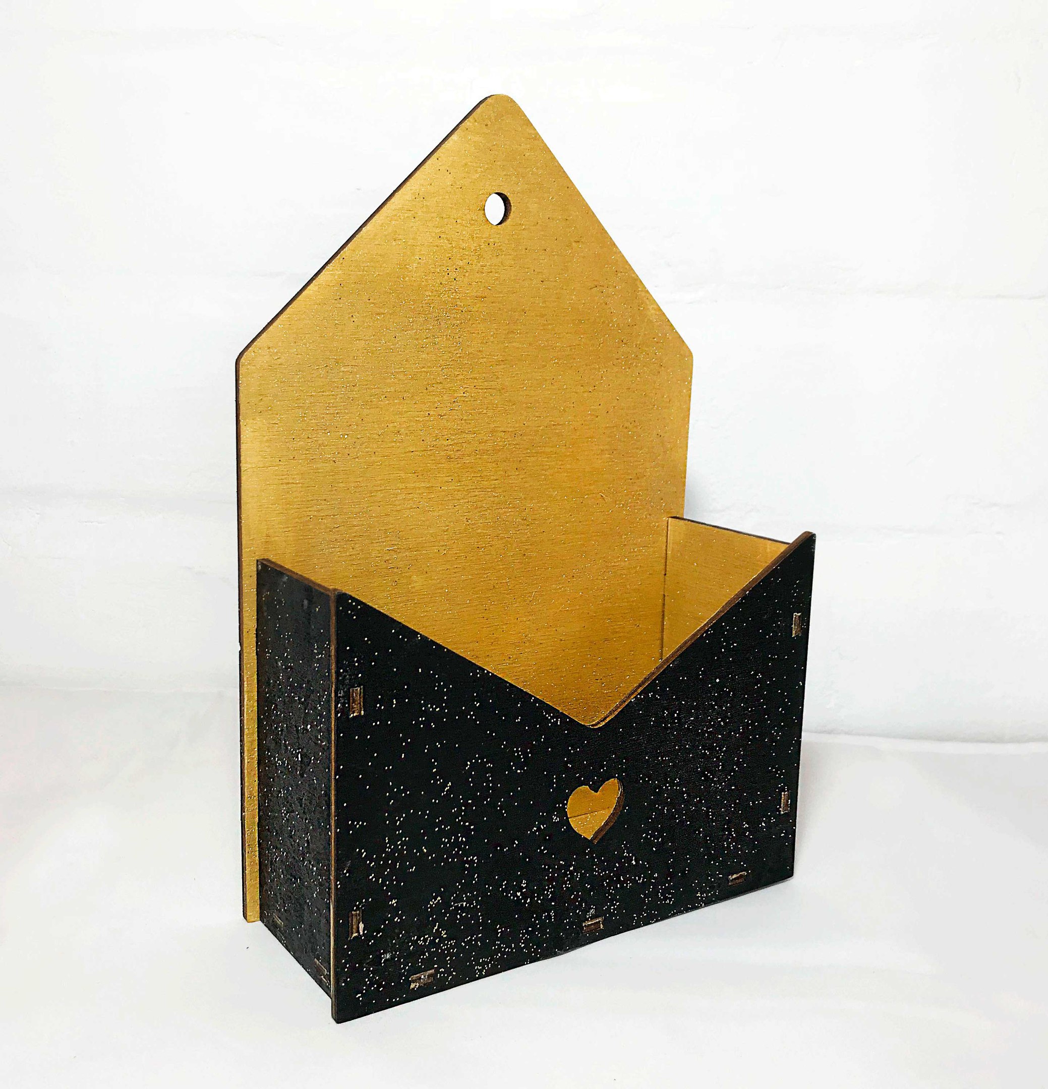 Ящик конверт двухцветный с блестками №9 (17*6,5*25,5) черно/золотой