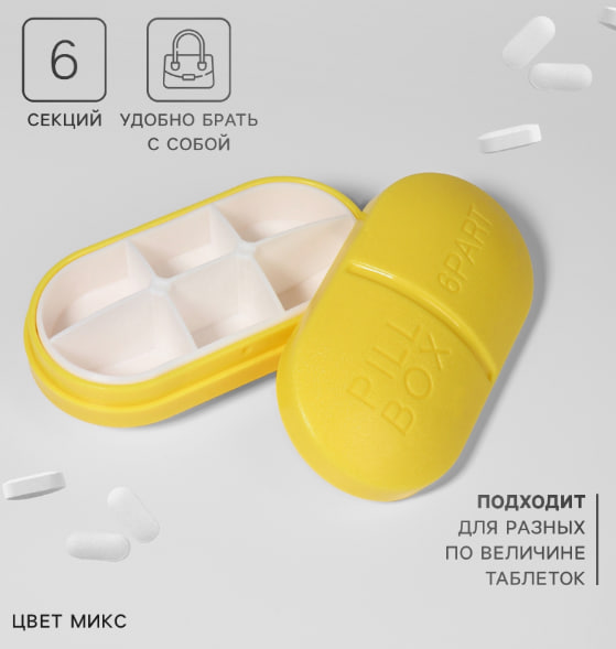 Таблетница Pill Box, 6 секций, 10×5.5×3 см, МИКС, 1528839 (2)
