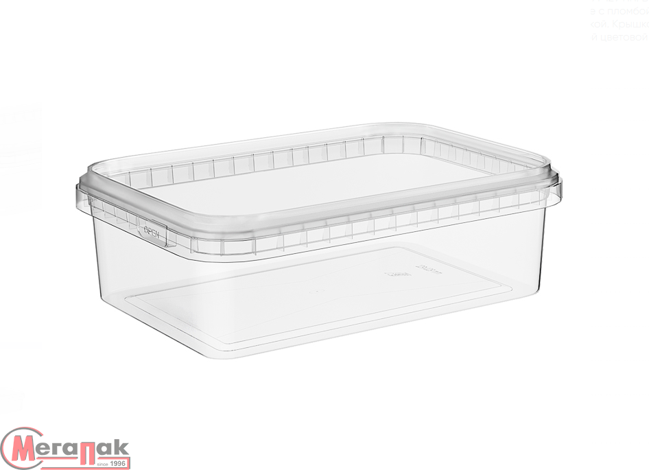 Банка (контейнер) прямоугольная 1,0 л. диаметр 191*129 мм. Высота с крышкой 60 мм. Оснащена короной жесткости. Имеет исполнение с пломбой для контроля вскрытия. Комплектуется полипропиленовой гладкой крышкой.