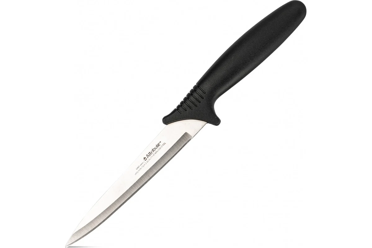 Нож кухонный из нержавеющей стали. Ручка ножа выполнена из пищевого пластика. Длина лезвия 12 см, длина ручки 12 см. Кухонный нож рекомендован к использованию в бытовых условиях. Не рекомендуется использовать в посудомоечной машине.