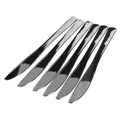 Ножи металлизированные для одноразового применения из полистирола. Предназначены для холодных и горячих (до +70°С) пищевых продуктов. Не допускать контакта с открытым огнем, нагревательными приборами и агрессивными средами. Длина 200 мм. Цвет серебристый.