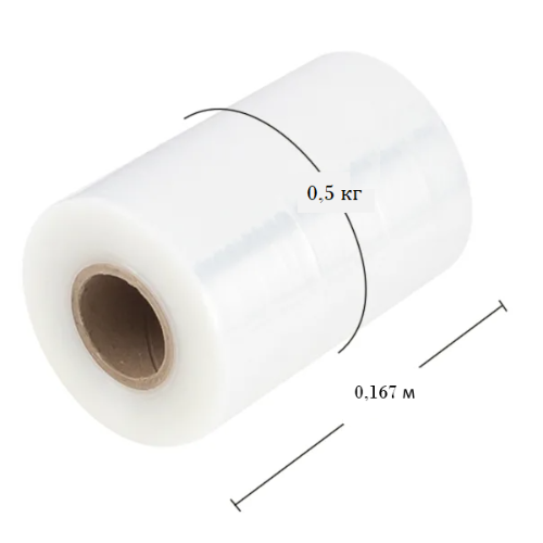 Стрейч-пленка первый сорт (23 мкм толщина, 4 см димаетр втулки, 8 см диаметр рулон, 16,7 см ширина рулона, 0,5 кг вес), отличительная особенность - изготовлена из первичного сырья, прозрачная