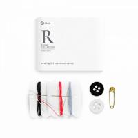 В набор входит игла, нити разных цветов, 2 пуговицы (черная и белая), булавка. Картонная упаковка.
