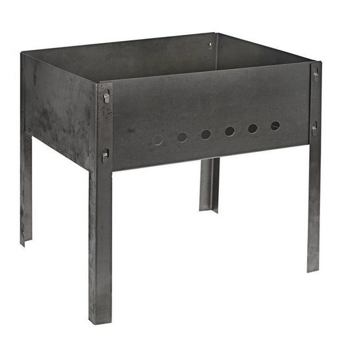 Сборный мангал без шампуров устойчив к коррозии и механическим воздействиям за счет того, что изготовлен из высококачественной углеродистой стали. Большой размер корпуса дает возможность приготовить пищу на открытом воздухе для целой компании. Модель устанавливается на ножки, что повышает удобство использования.