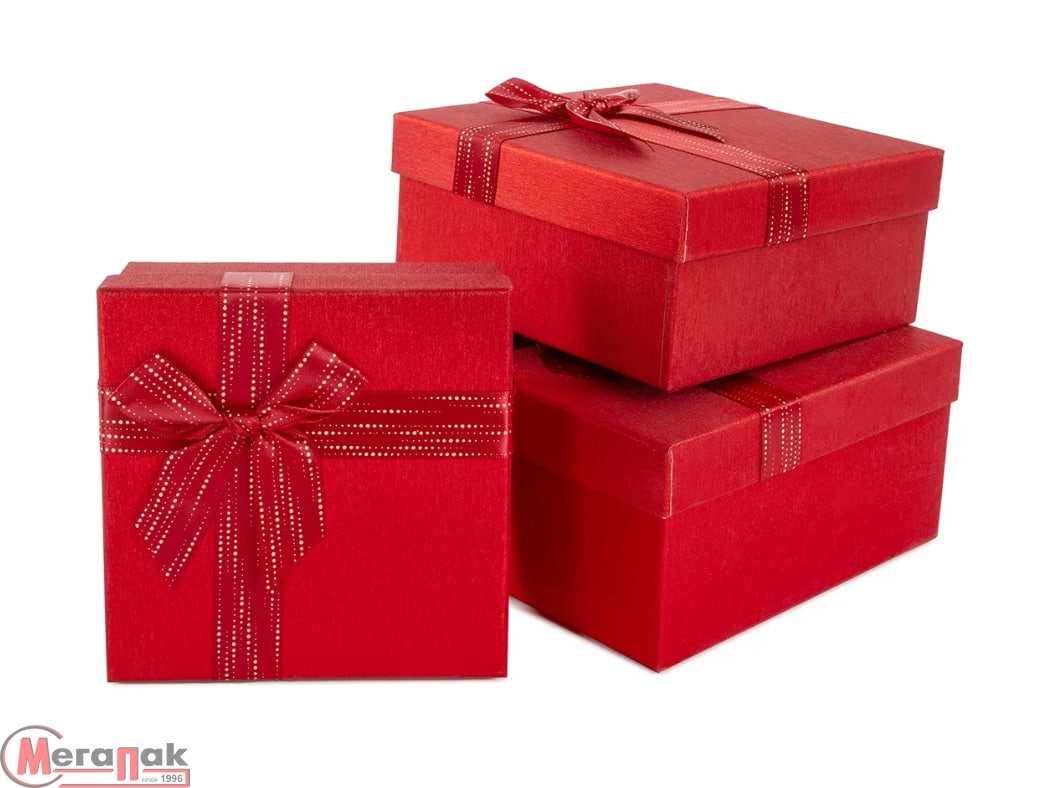 Подарочная коробка — один из самых популярных видов подарочной упаковки. Подходит практически для любого подарка: ювелирных украшений, сувениров, игрушек, сладостей. Можно выбрать коробку любого размера, формы (квадратную, круглую, овальную, в форме сердечка и др.) и цвета. Если подарок объёмный или в состав подарка входит не один предмет, его можно упаковать в несколько коробок и составить из них единую композицию.