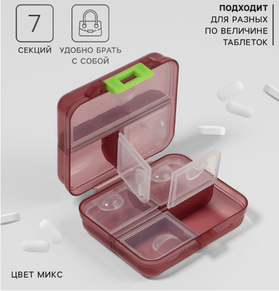 Таблетница «Трансформер», 7.5×6.5×3.5 см, 7 секций, МИКС, 3734588 (2)