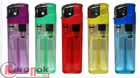 Зажигалка с пьезоэлементом, без дозаправки, без рисунка, прозрачная, разные цвета корпуса. Не турбо!